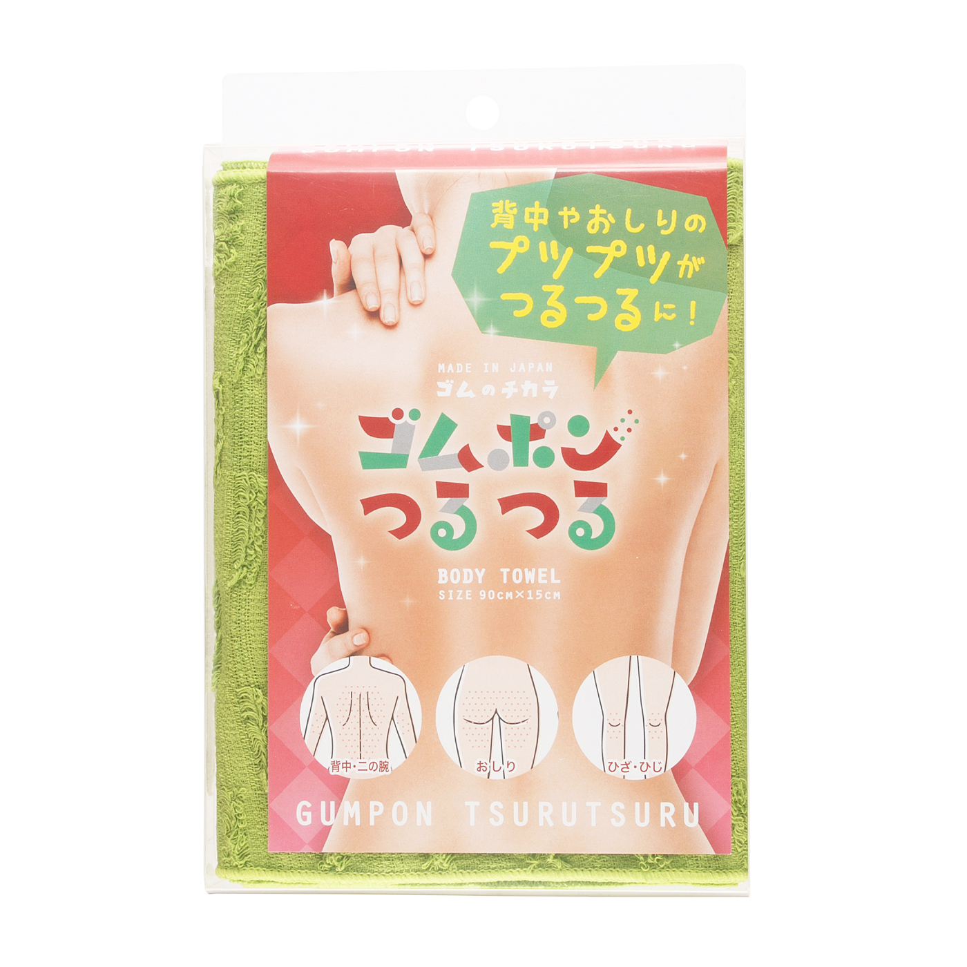 ゴムポンつるつる 背中 お尻 ひじ ひざのプツプツがつるつるに 背中ニキビ タオル ピーリング がーるずこねくと
